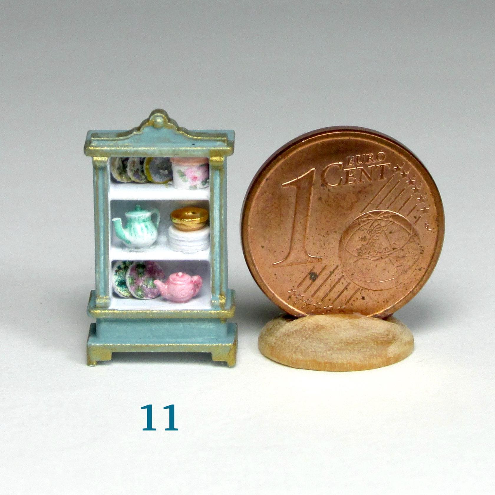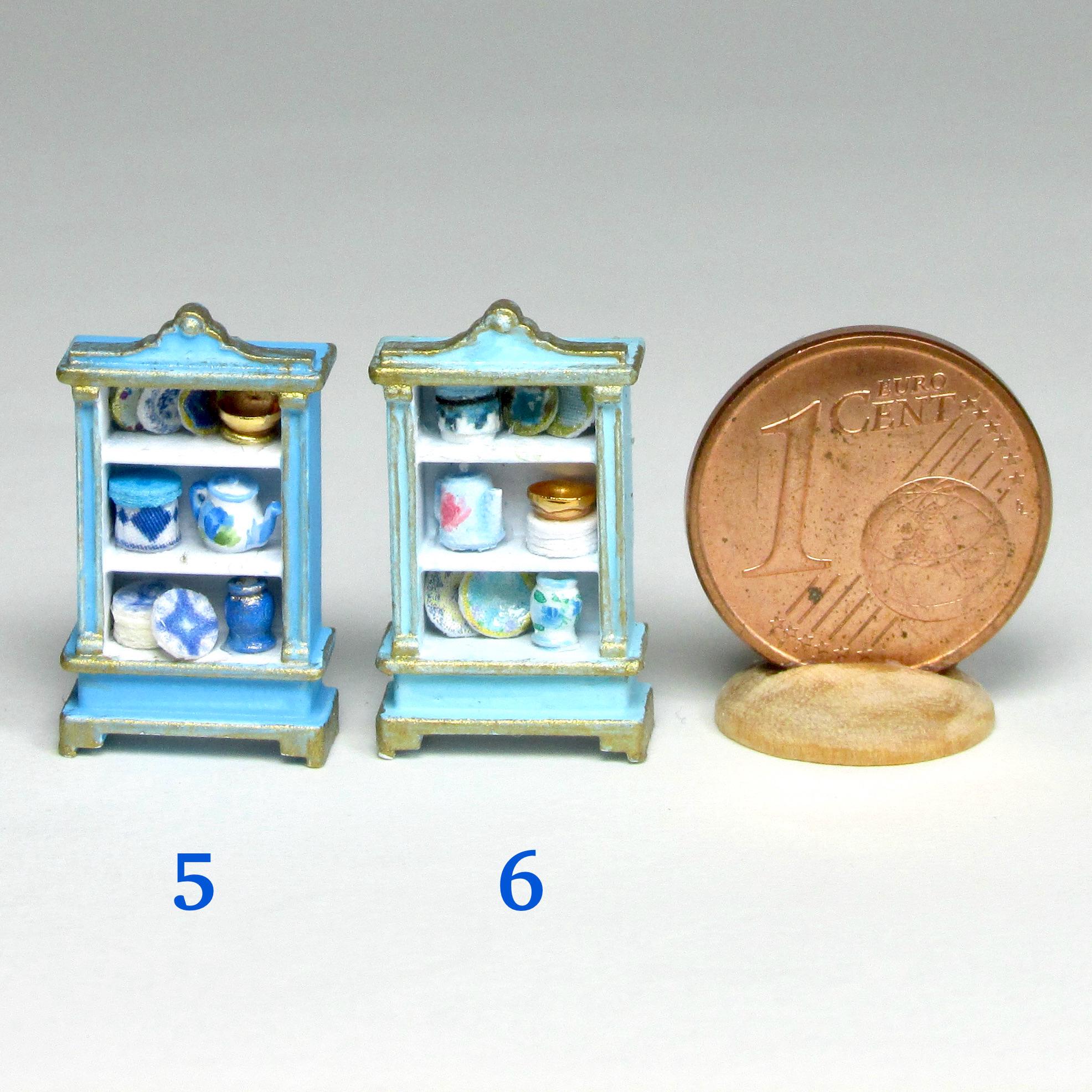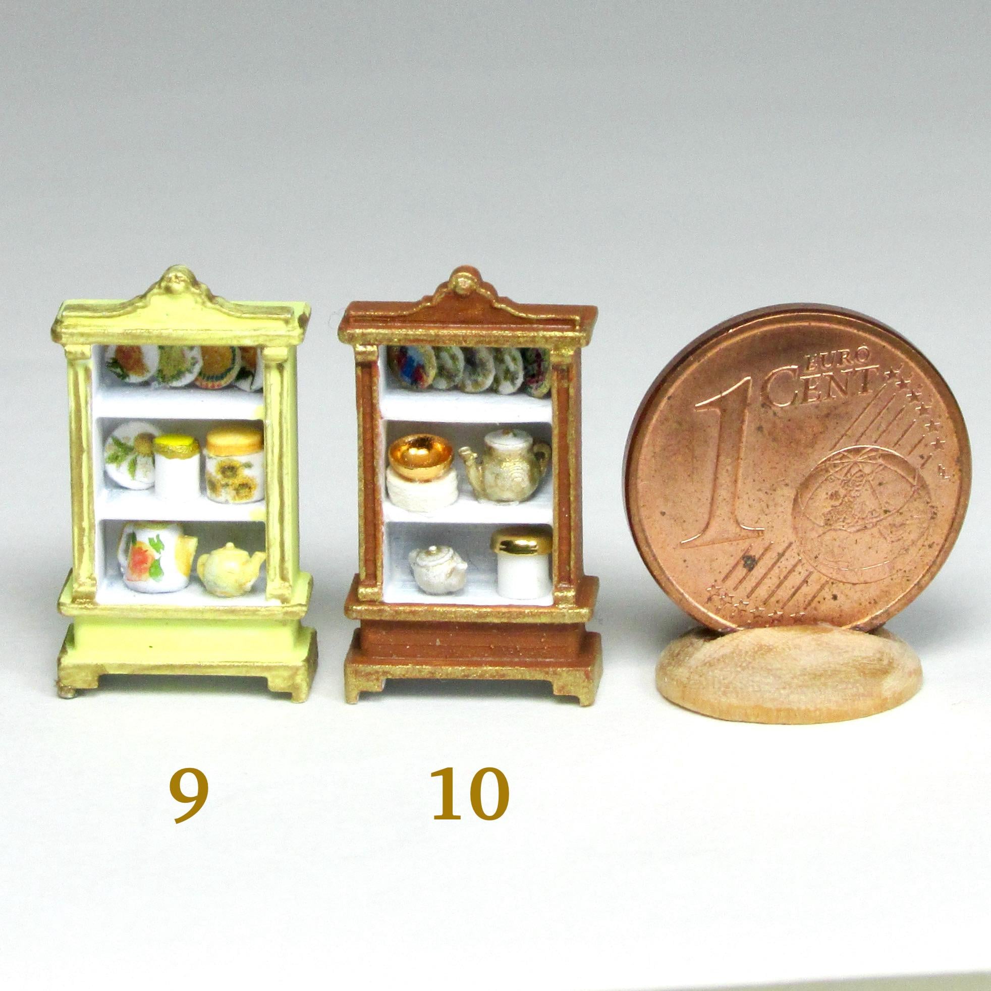 Miniature sideboard, made and painted entirely by hand, containing various types of objects, collectible plates, teapots, glasses etc. to be placed in the living room or kitchen. Each model is different in color and contained objects, and this makes it a unique, non-replicable object. 1/144 scale