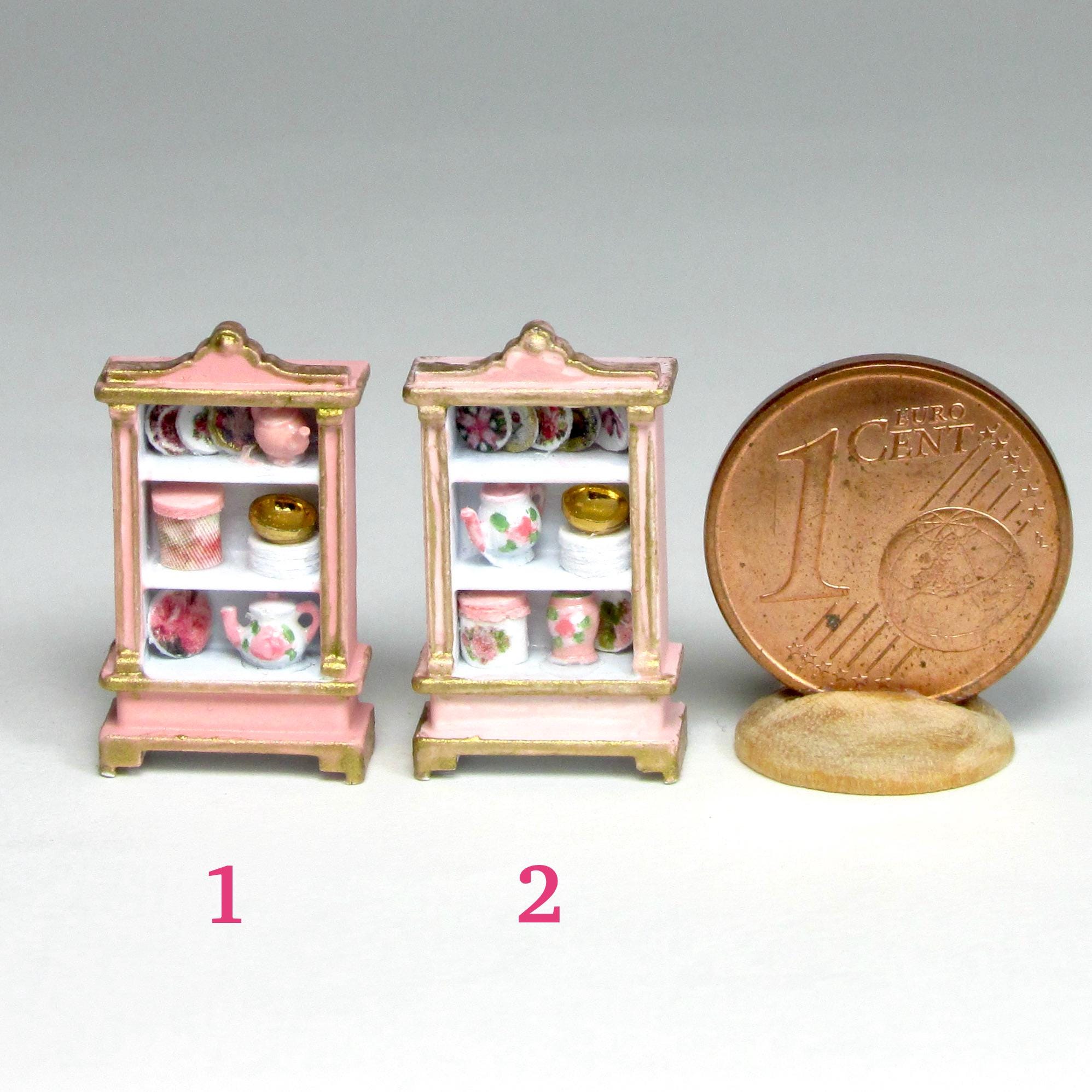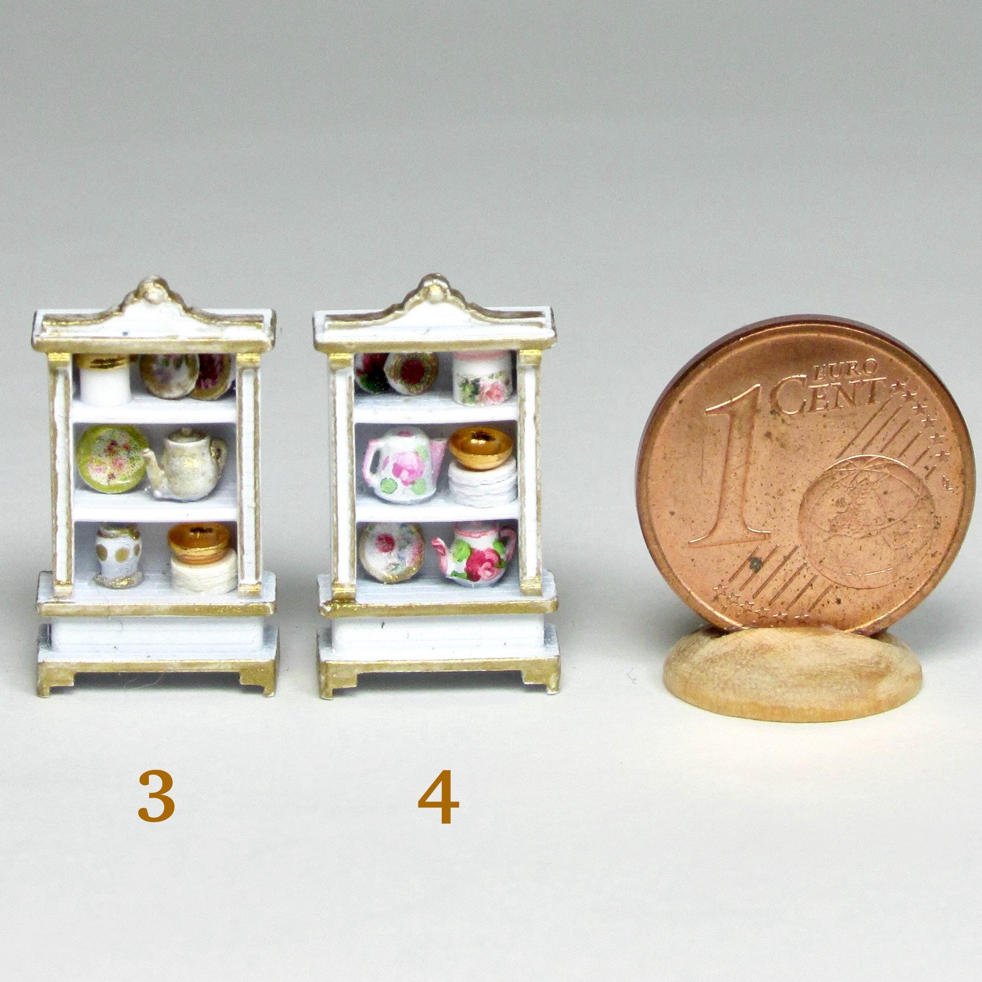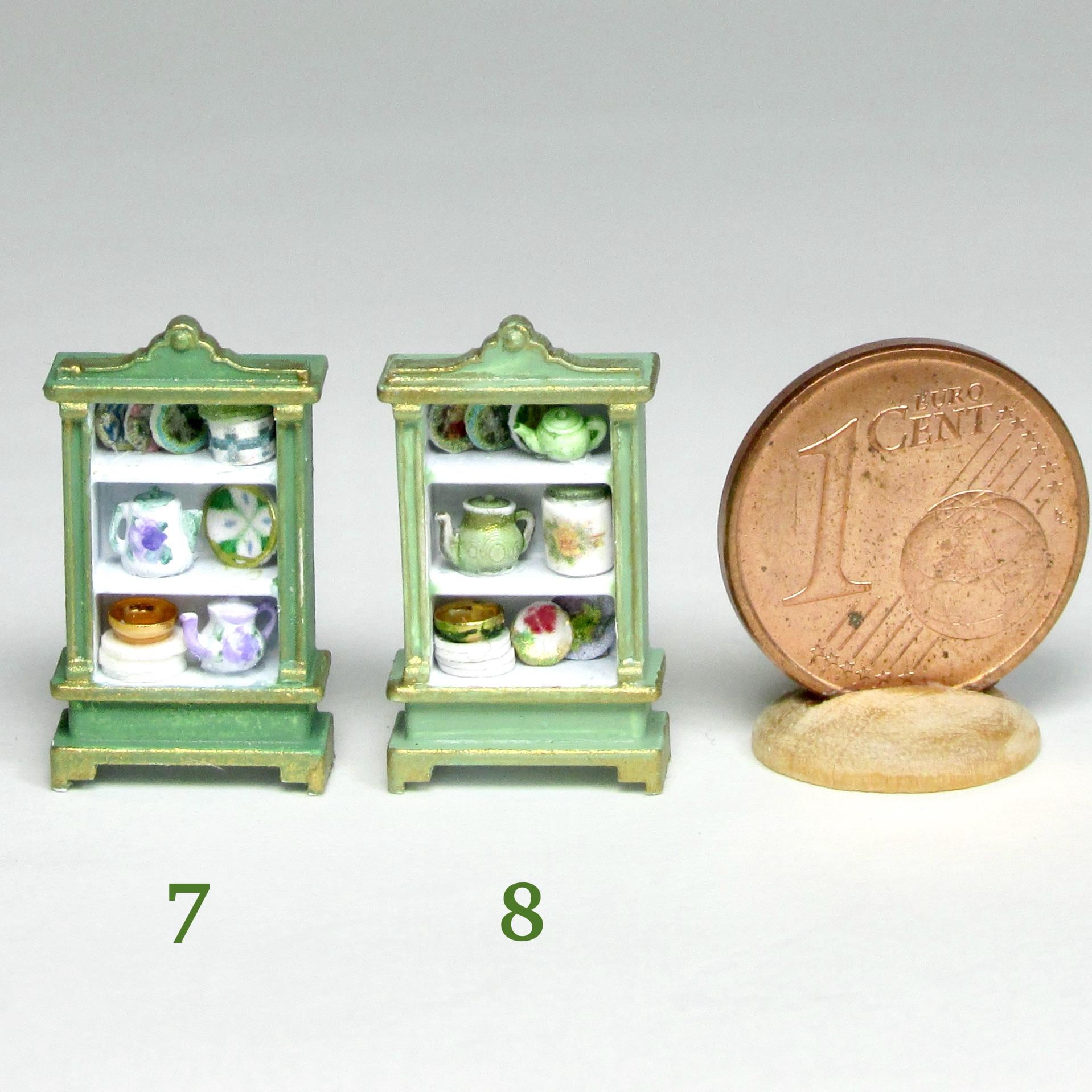 Miniature sideboard, made and painted entirely by hand, containing various types of objects, collectible plates, teapots, glasses etc. to be placed in the living room or kitchen. Each model is different in color and contained objects, and this makes it a unique, non-replicable object. 1/144 scale