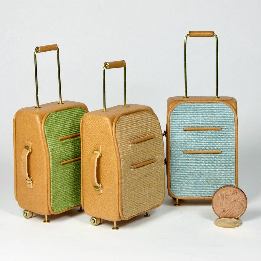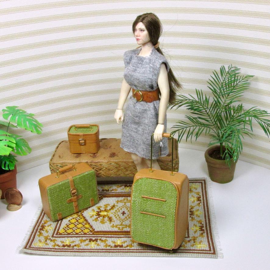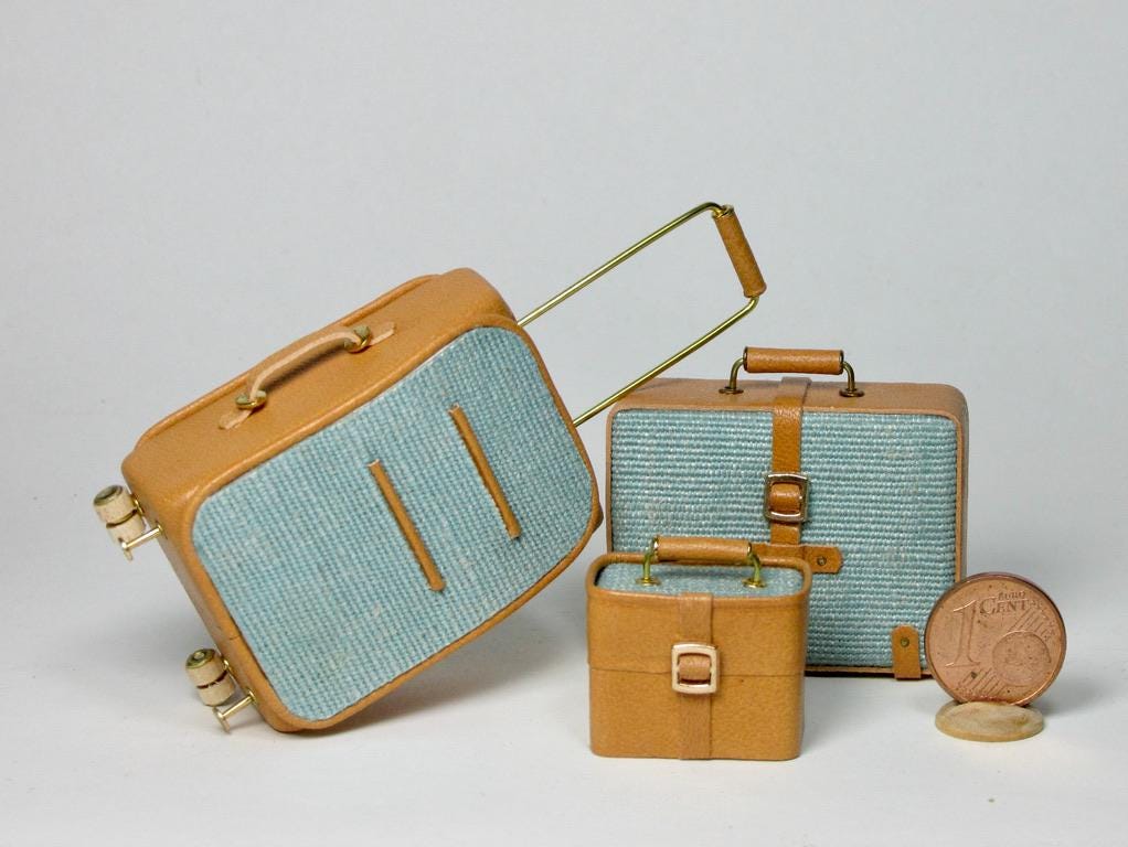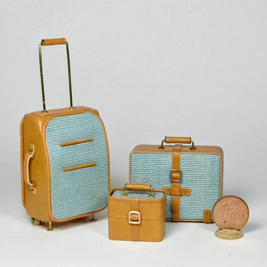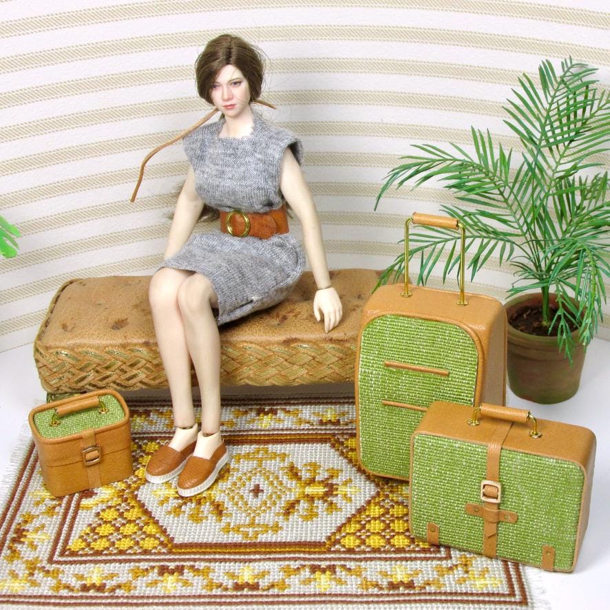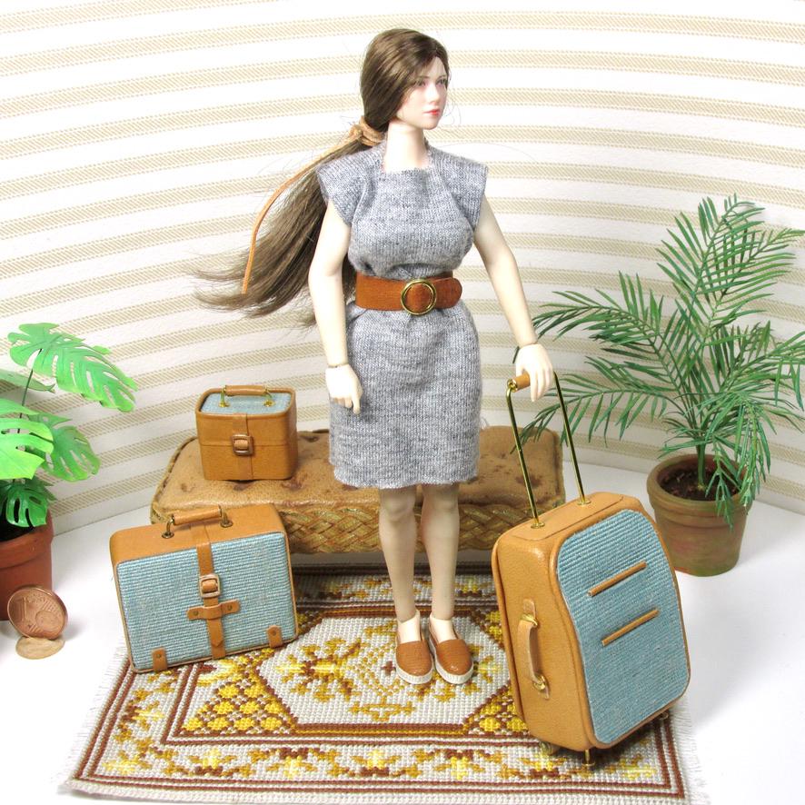 These beautiful luggage sets are handcrafted in leather and antique damask and feature impeccable finishes. The material used and the elaborate finishes justify their price. The set includes a suitcase, a beauty case and a trolley. The model is suitable for an elegant, romantic but contemporary woman. Due to the choice of materials and design, they match both a modern and vintage style. Scale 1/12