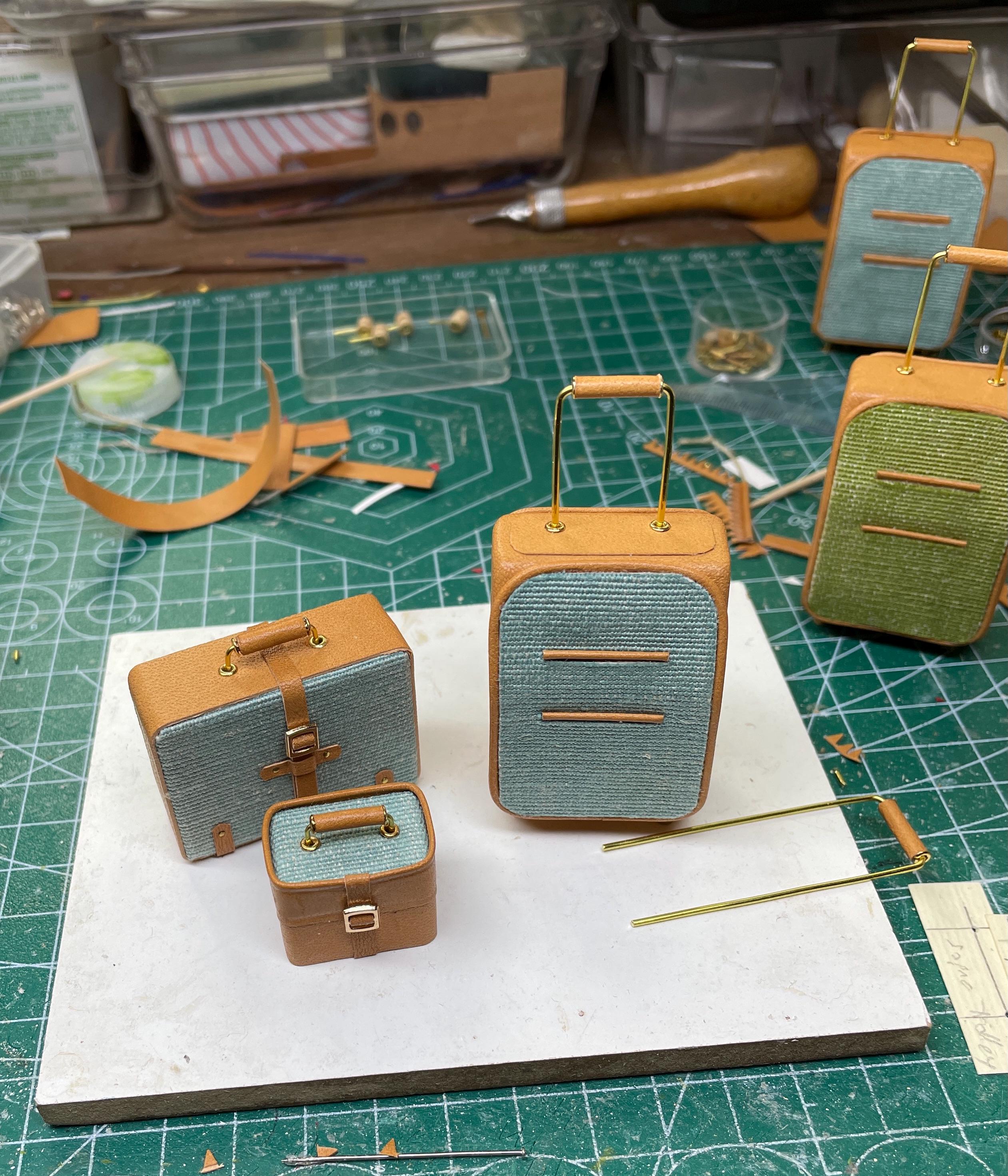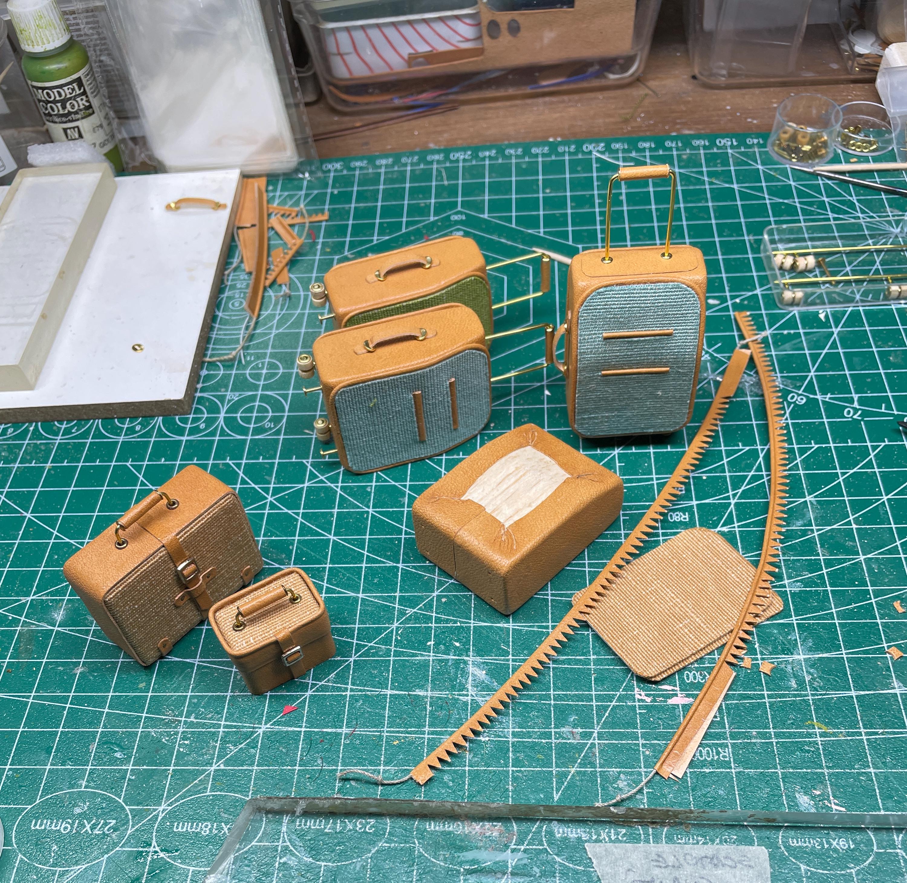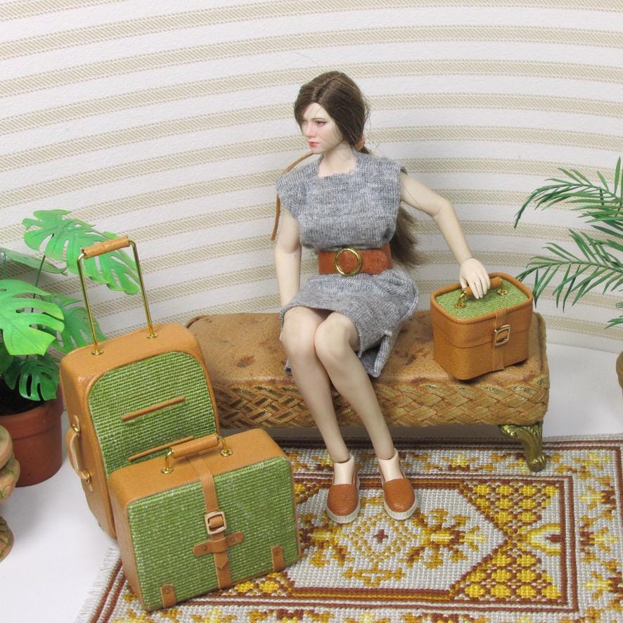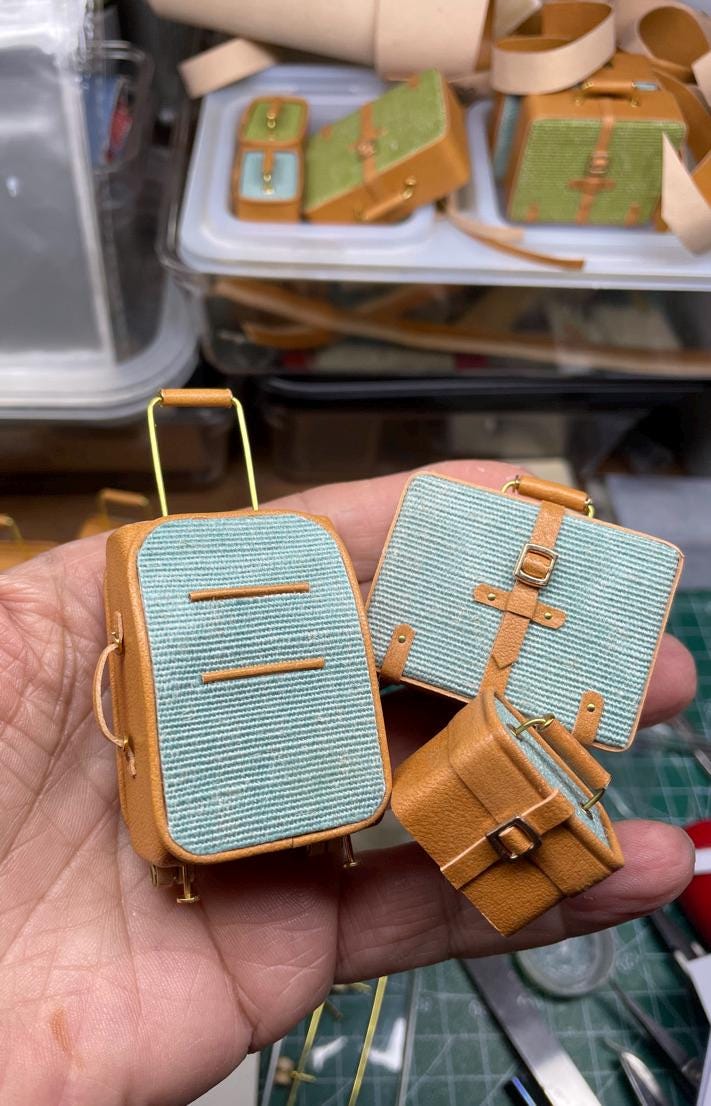 These beautiful luggage sets are handcrafted in leather and antique damask and feature impeccable finishes. The material used and the elaborate finishes justify their price. The set includes a suitcase, a beauty case and a trolley. The model is suitable for an elegant, romantic but contemporary woman. Due to the choice of materials and design, they match both a modern and vintage style. Scale 1/12