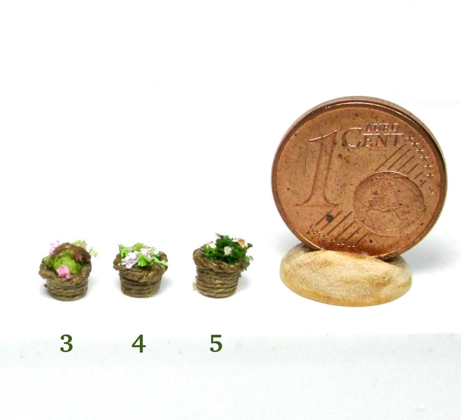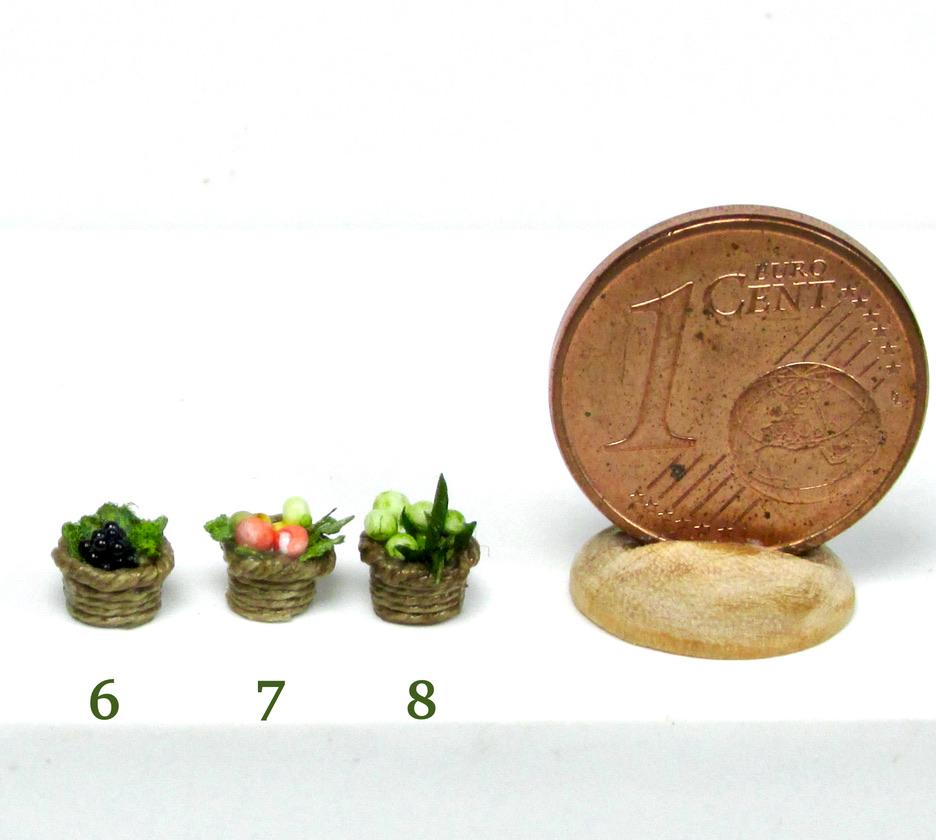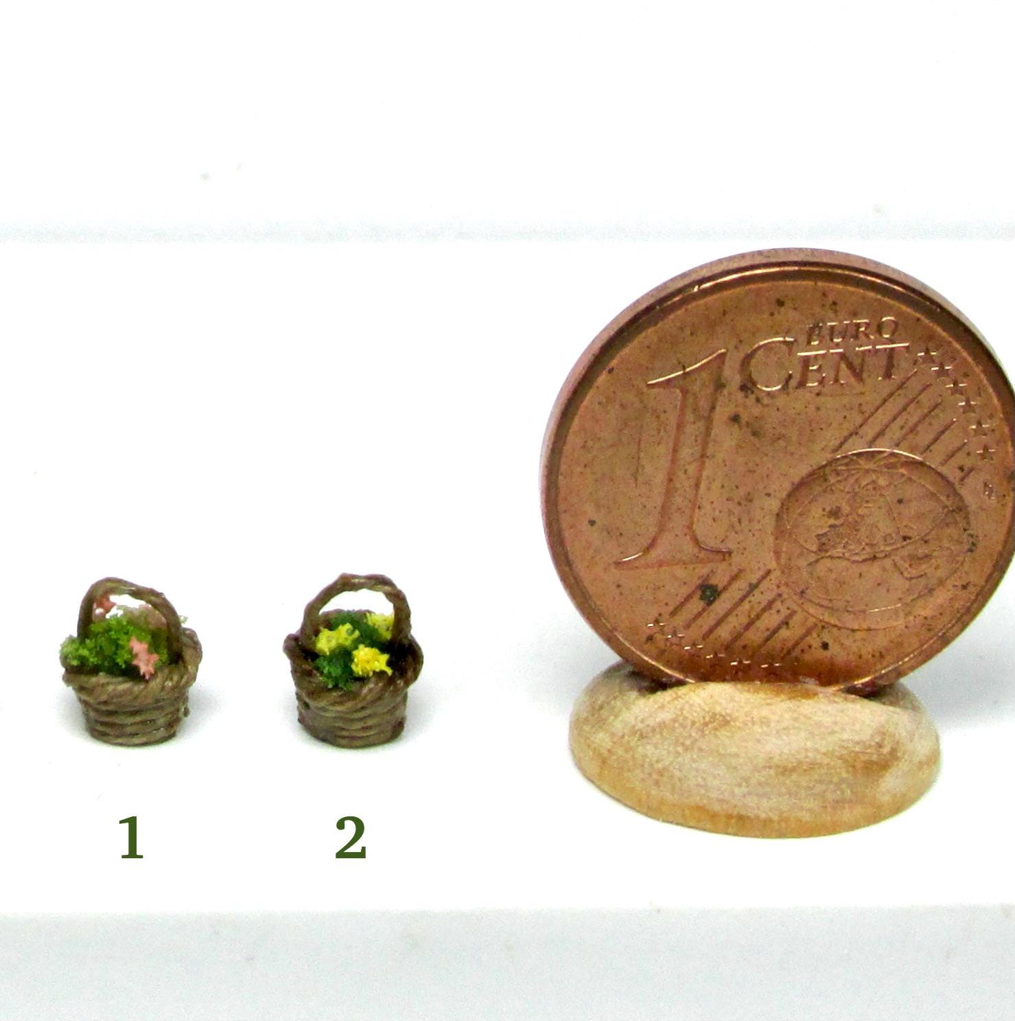 Micro basket jute fiber with flowers or fruit. Completely hand made is perfect for kitchens, living rooms or shops, as seen from the photos. 1/144 scale