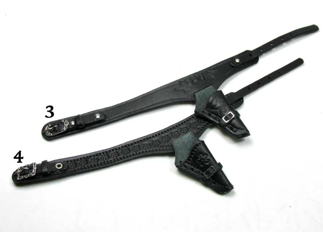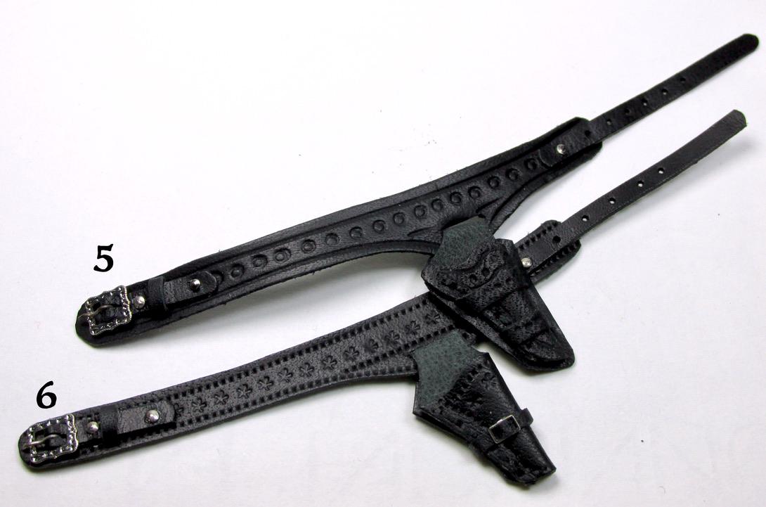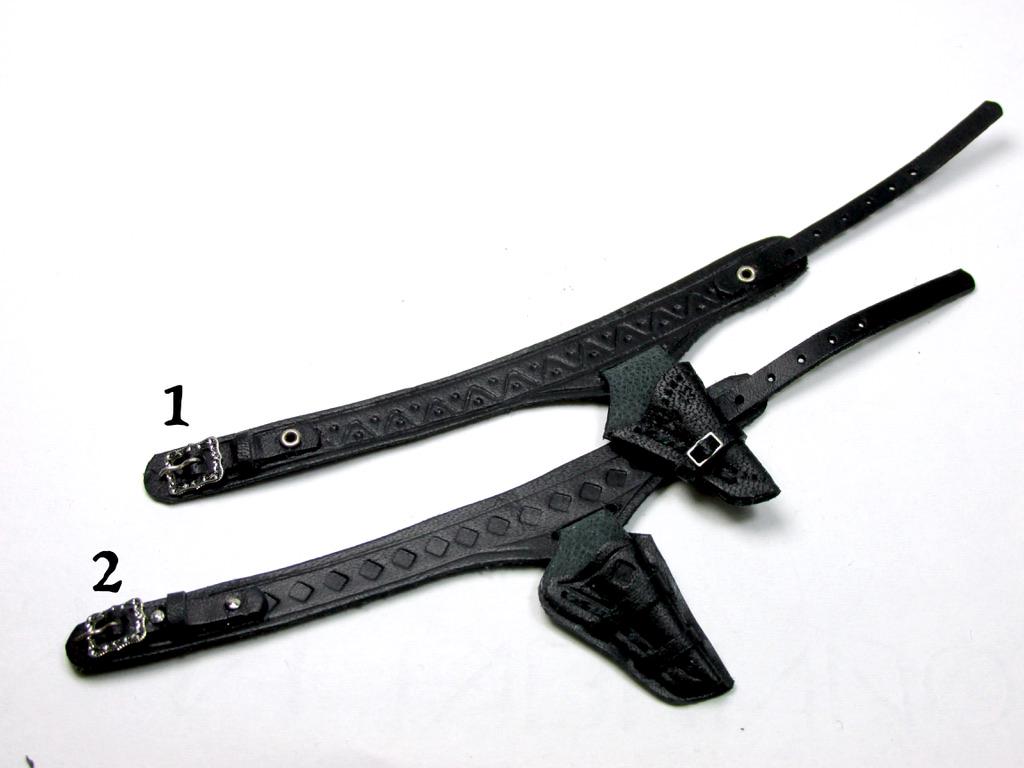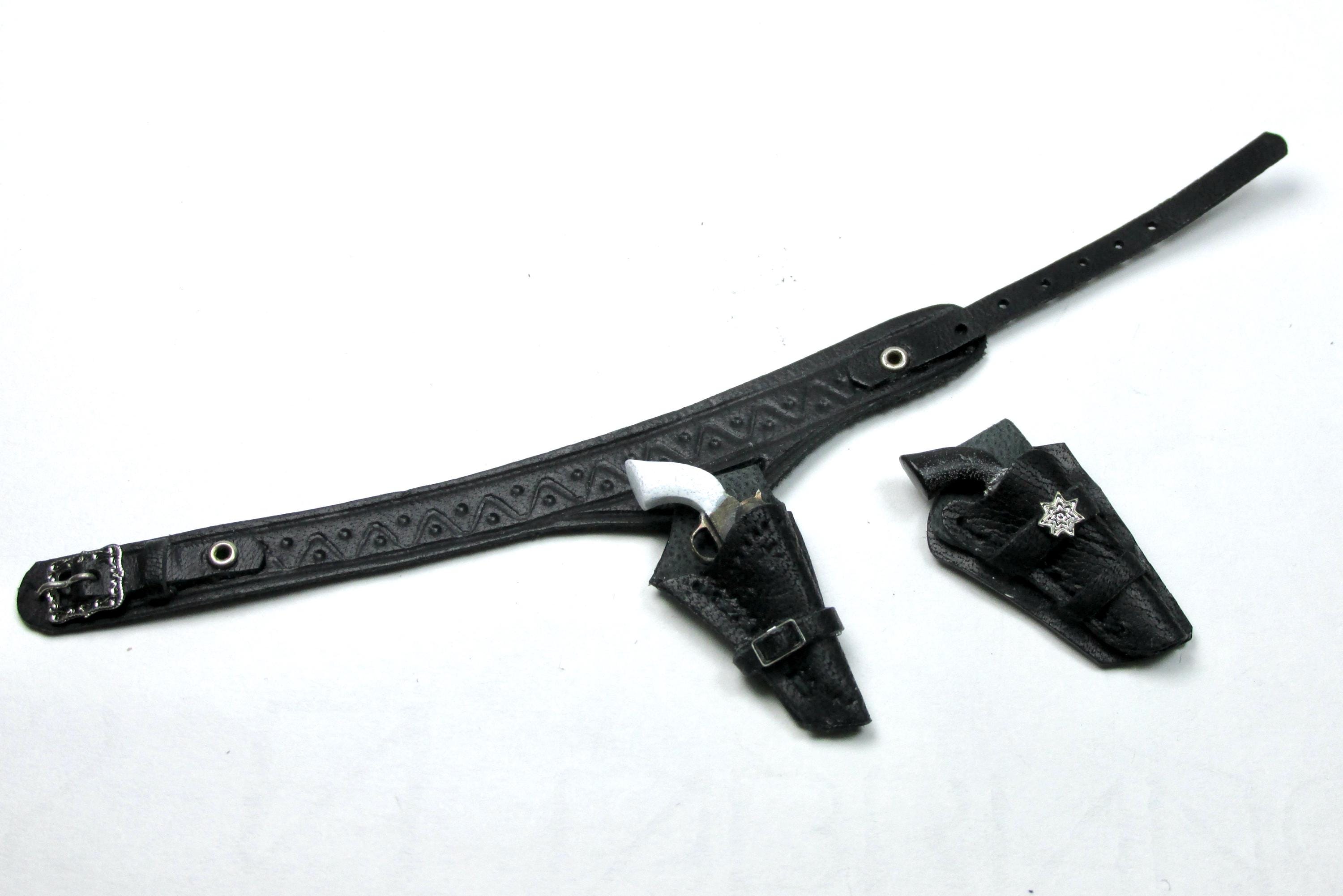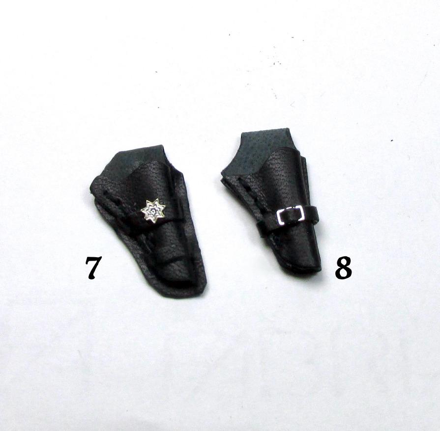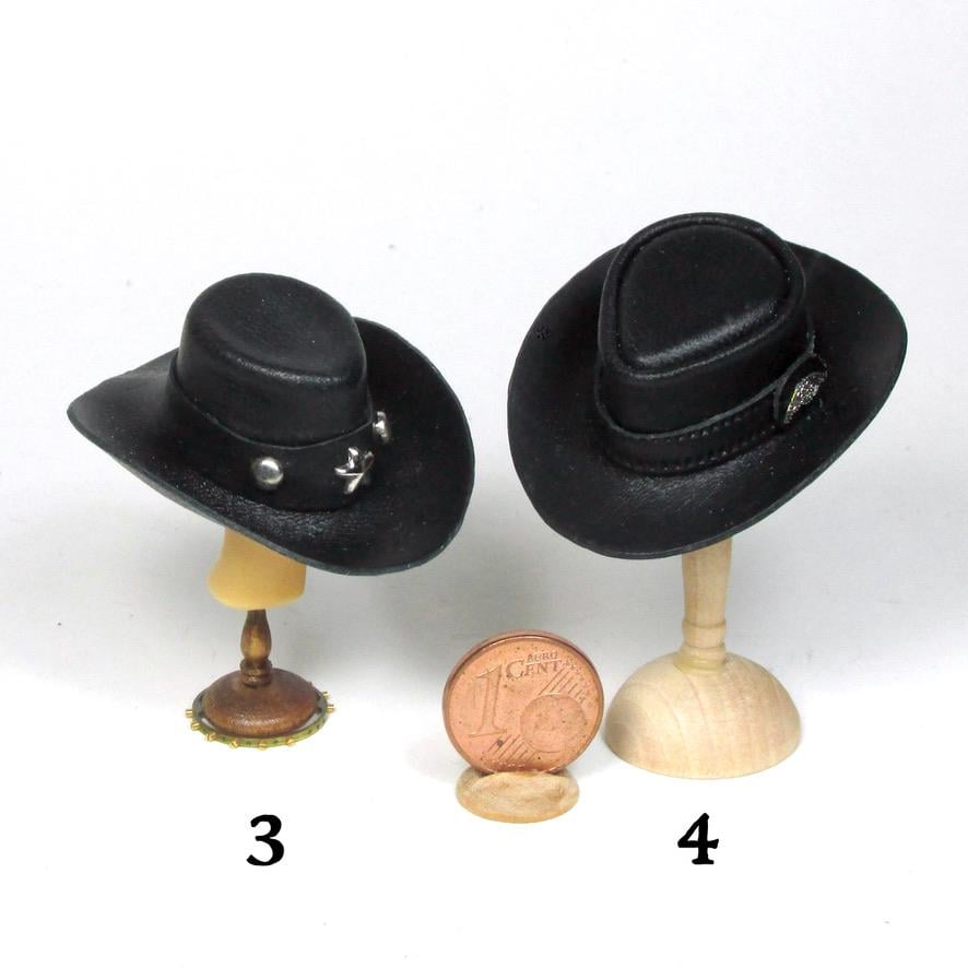 Western clothing items, in perfect cowboy style. Hats, miniature Winchester rifle cases, revolver holsters, and decorated belts are perfect for decorating a corner of a cottage, a souvenir shop, a riding school, a men's living room, or the home of a film buff. The two of embossed leather case, a traditional open model with shoulder strap are carefully finished and hand-sewn, and has a soft suede interior to protect the shotgun. All items are entirely handmade in black leather and perfectly finished in every detail, in 1/12 scale.