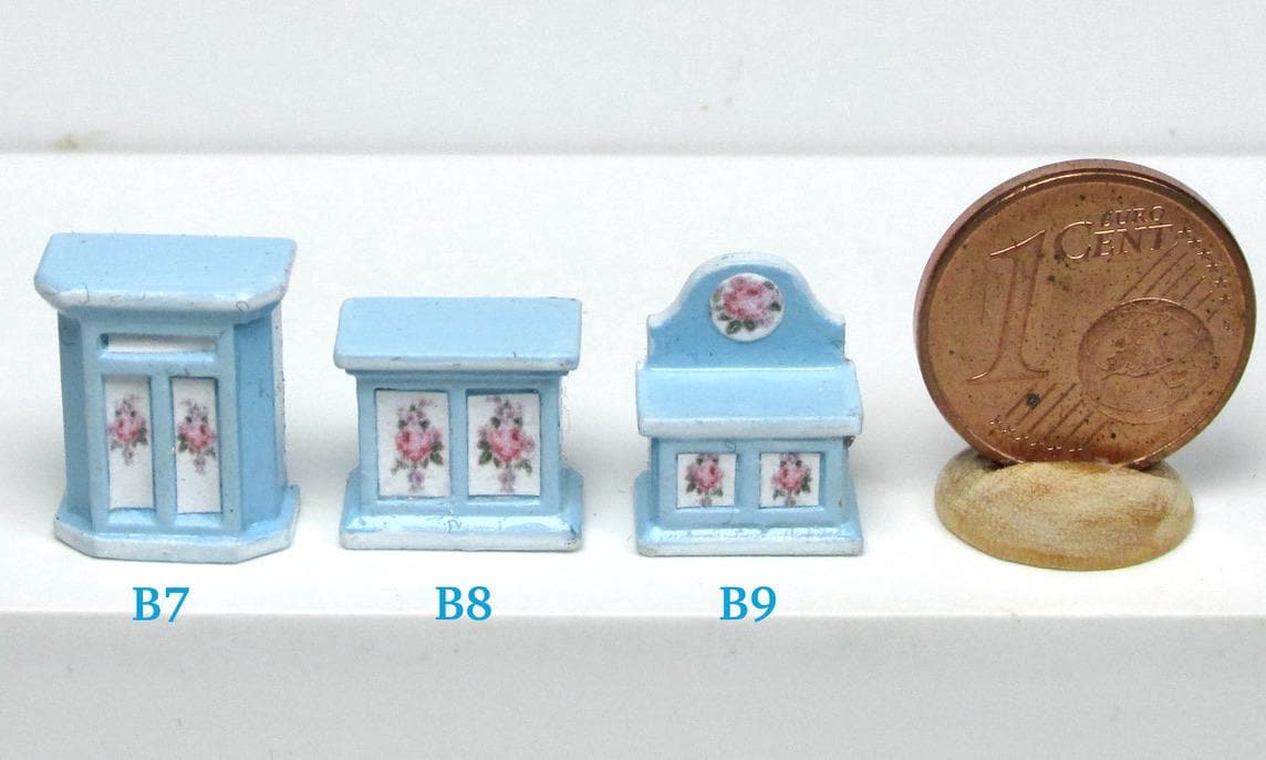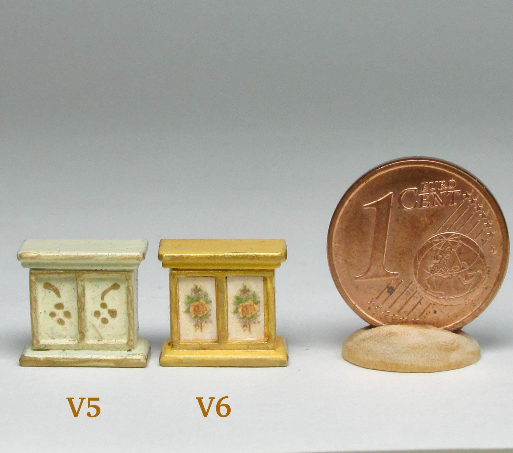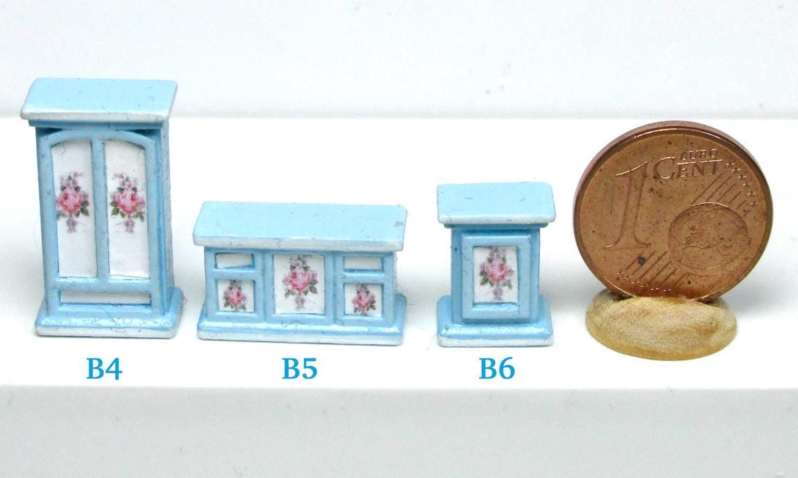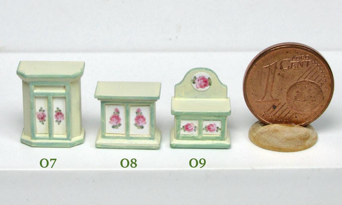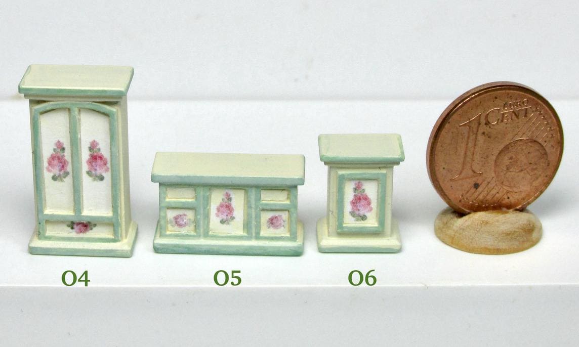 If you have one baby house cabinet, and have been at a loss as to how to finish it,you have to use 1/120 scale furnishing. The baby house does NOT use 144th scale furniture., which is way too small. I product alcuni pieces to finish such a beautiful piece of furmiture. I think you will agree that the pieces in this scale are just perfect to fill the rooms attractively. As this article is hand made, colors and decorations may subject to some slight variations.