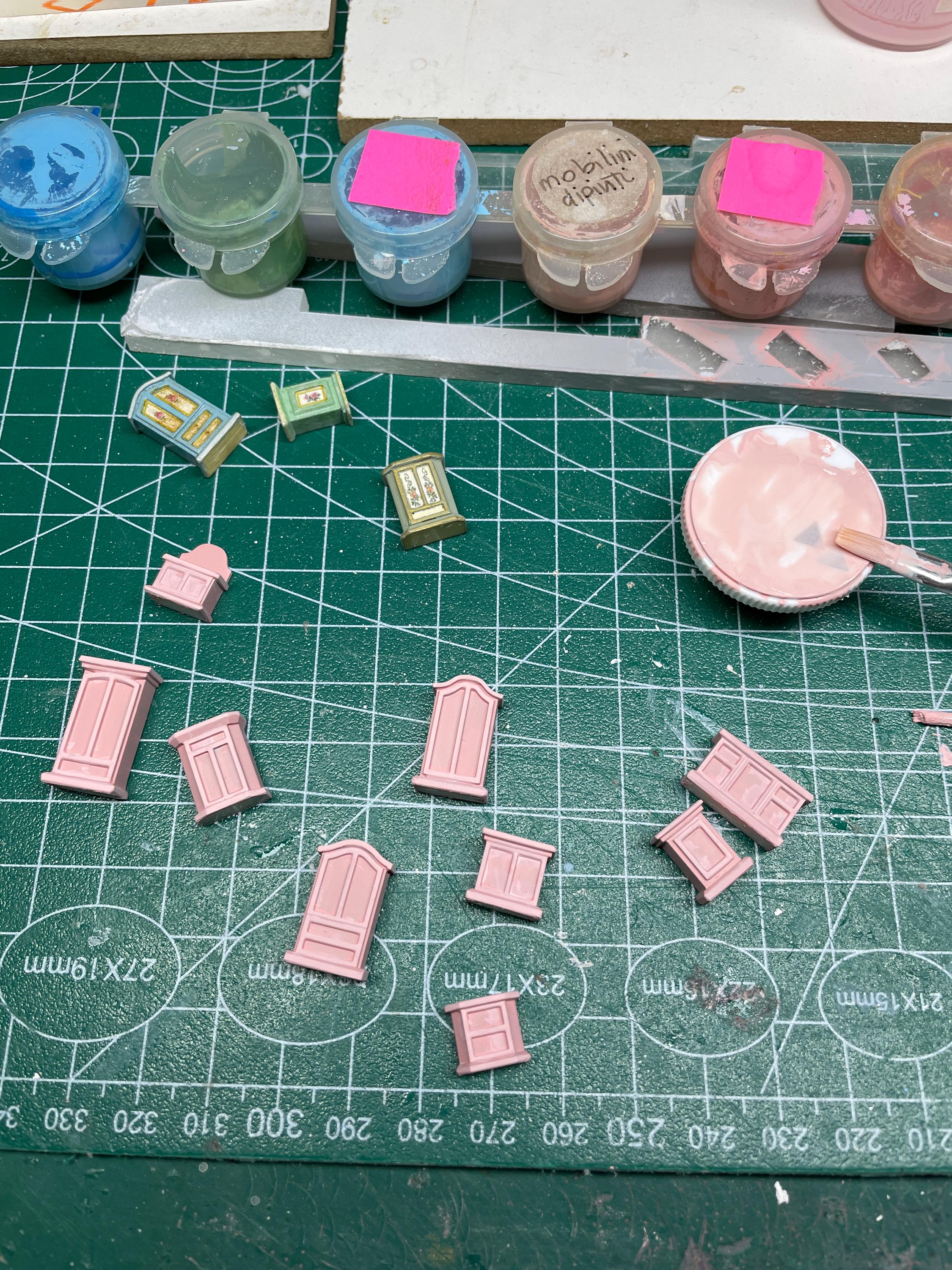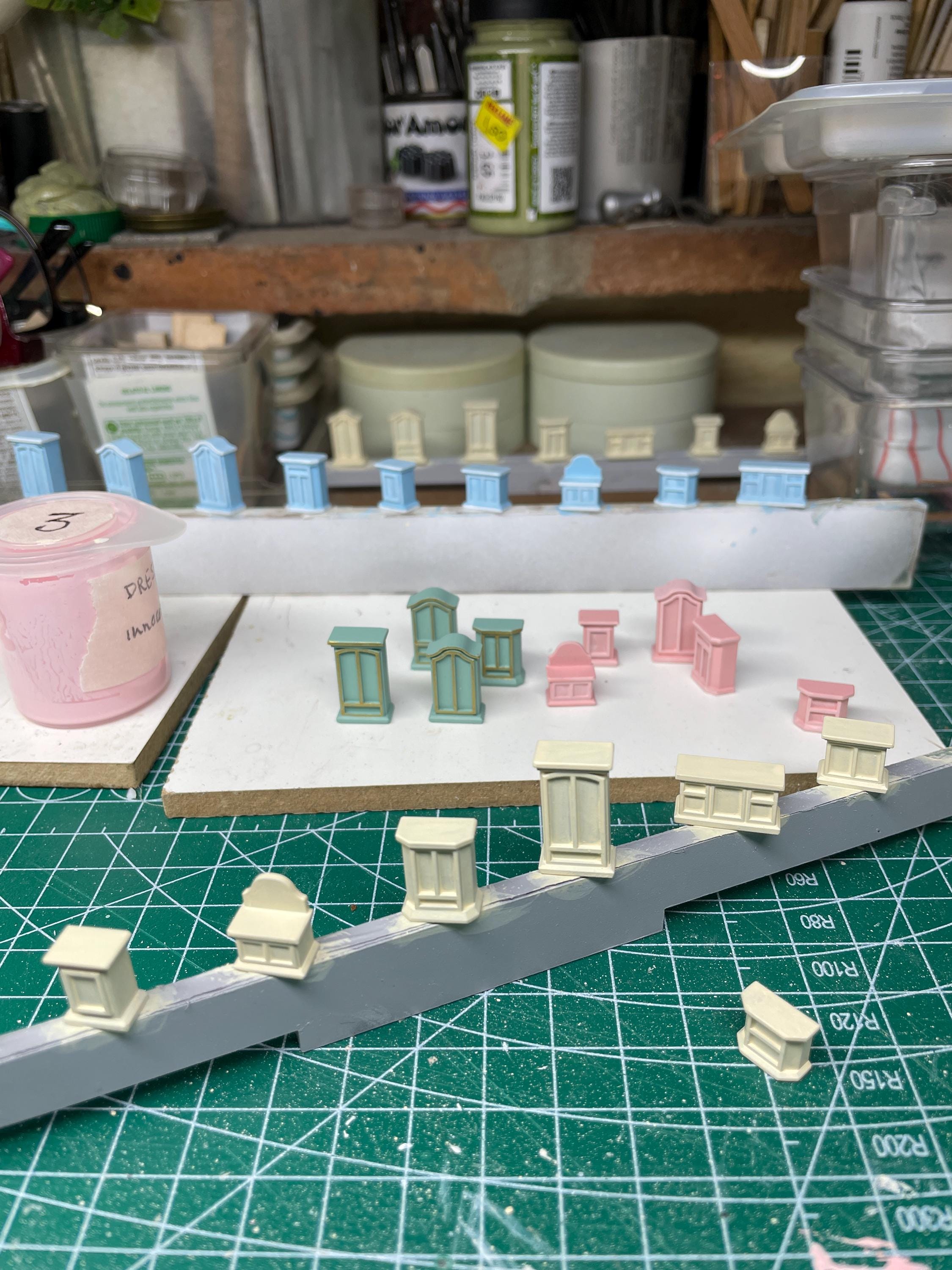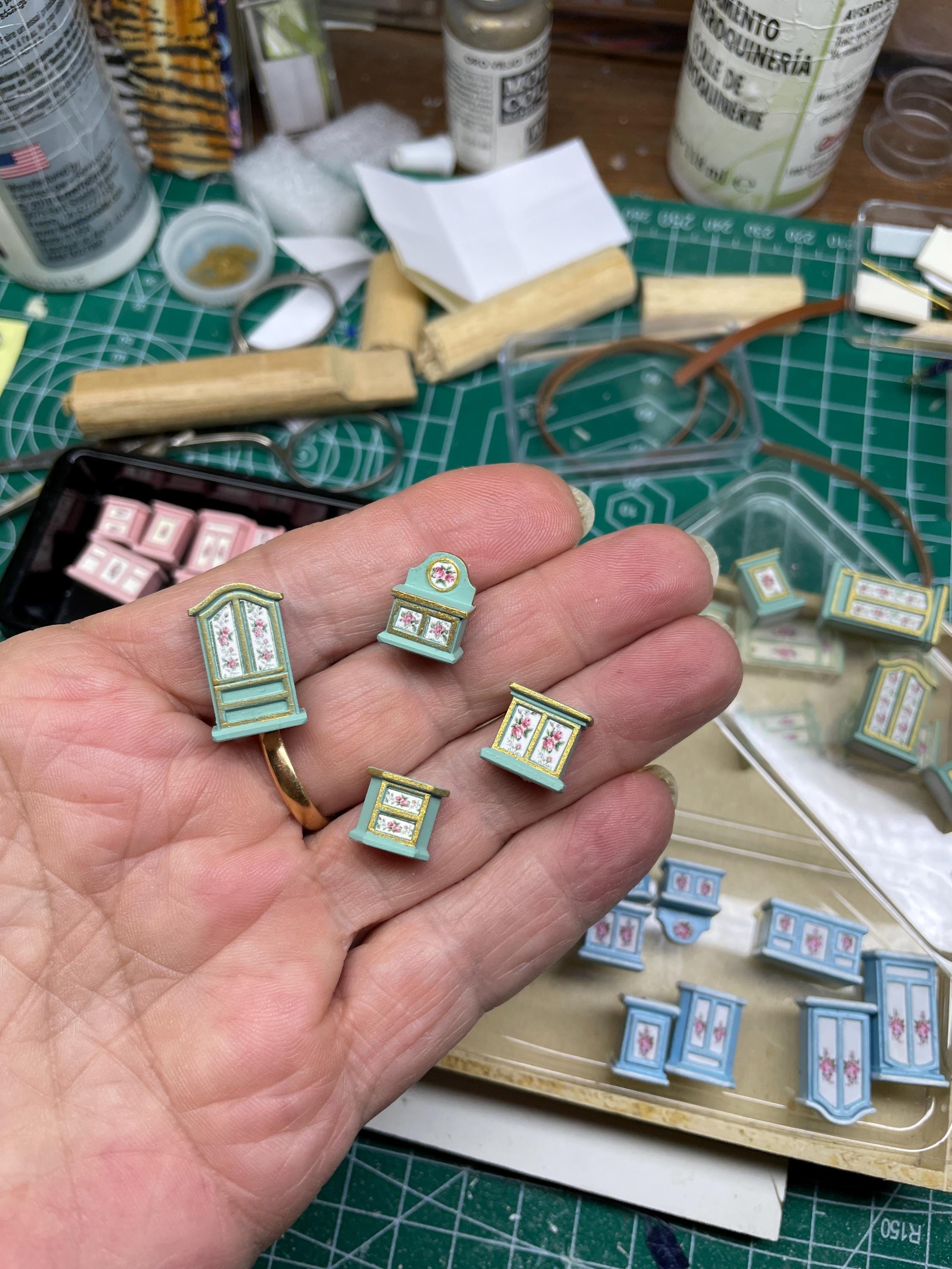 The paintings cabinets are made entirely by hand from original model in different shapes and colors. As you can see from the photos they are perfect for the individual roomboxes but also babyhouse or cabinets and can be placed in the bedroom and in the living room.