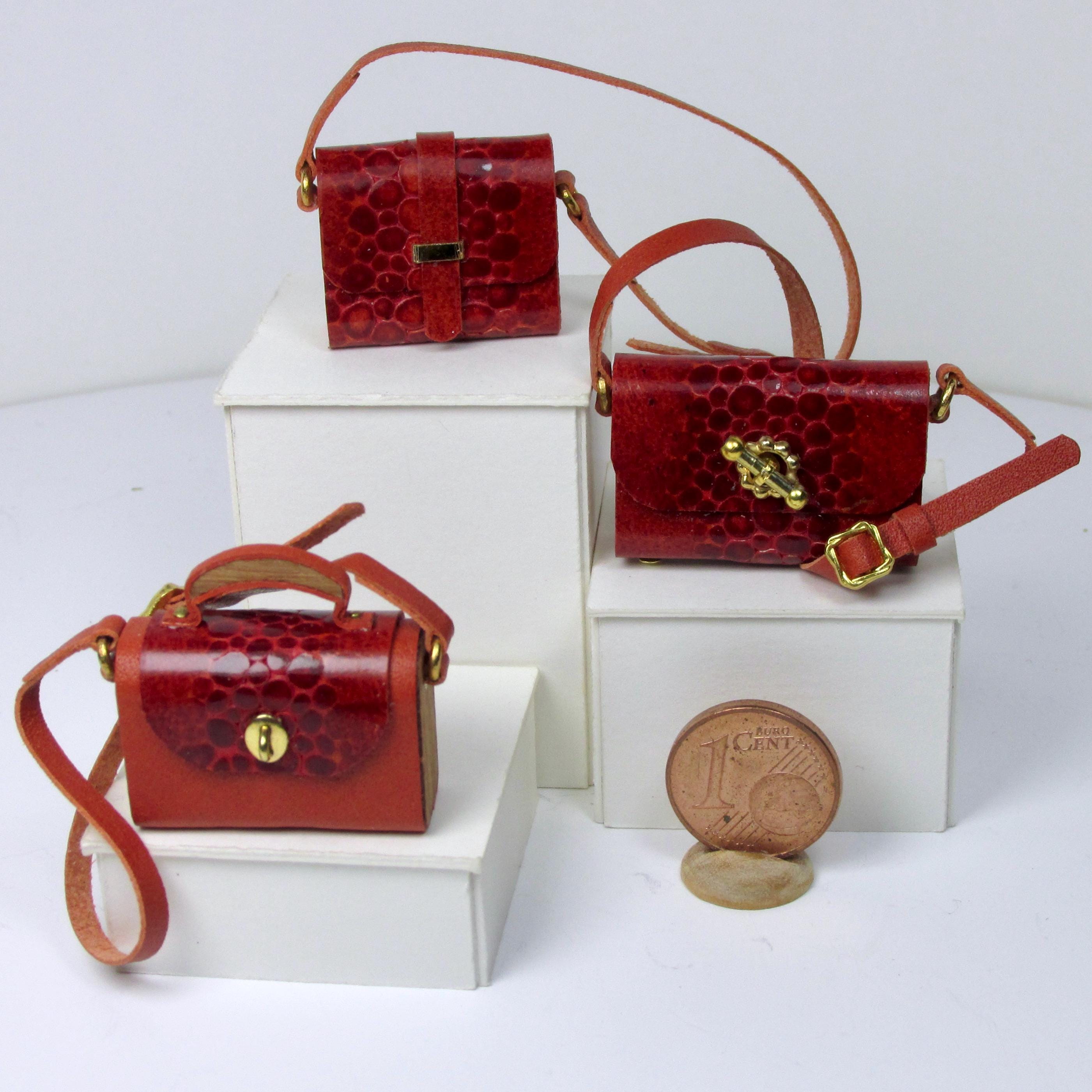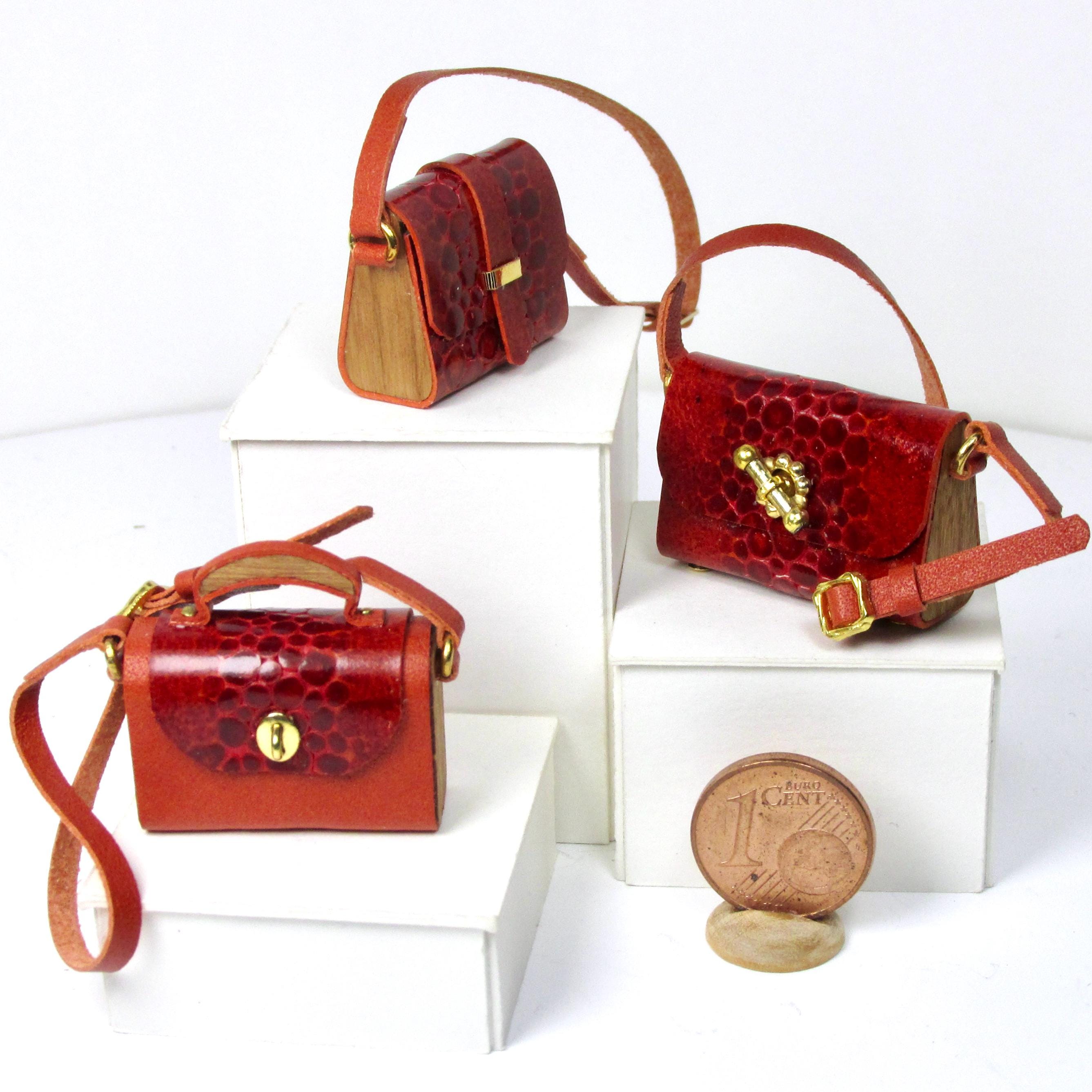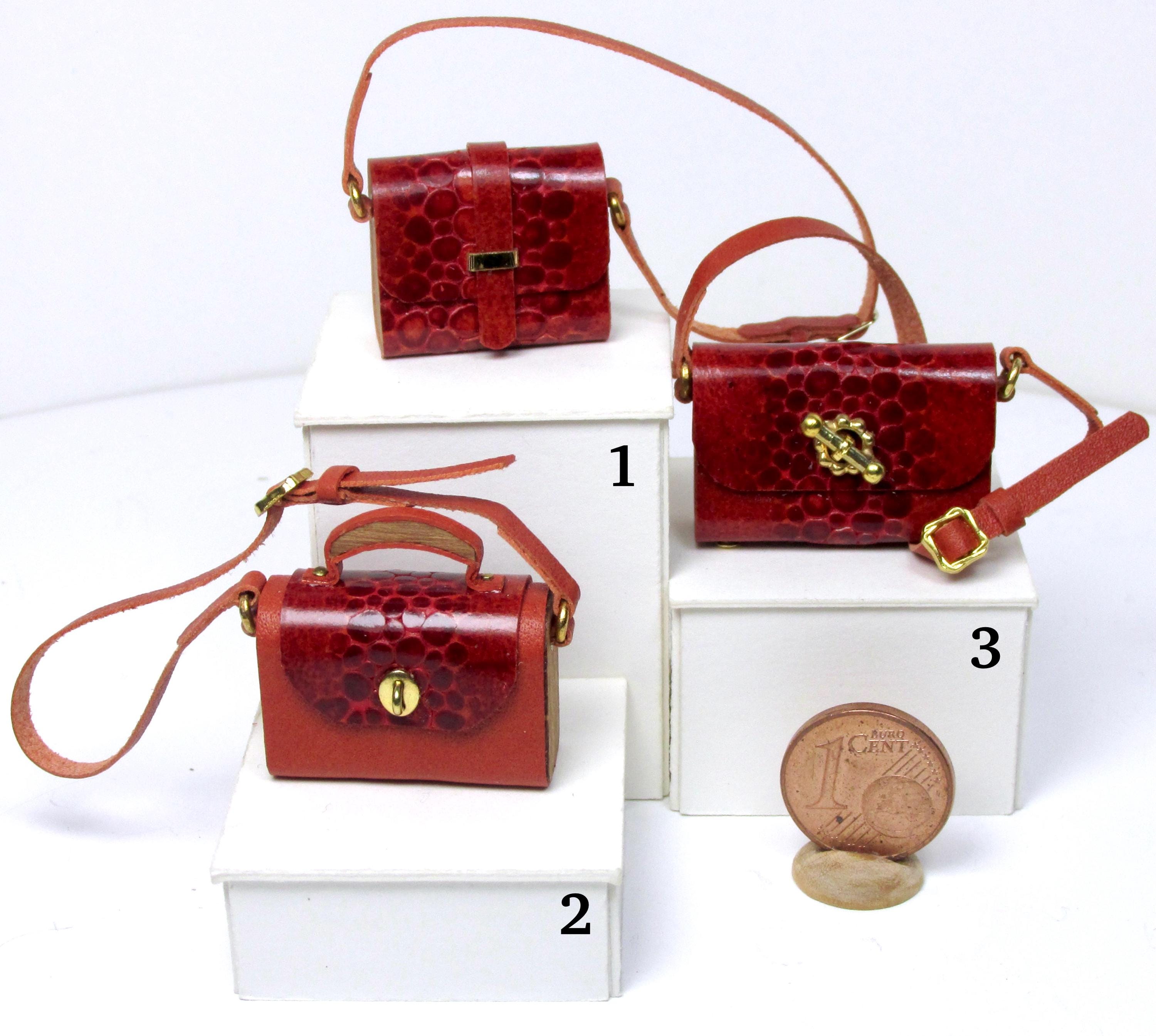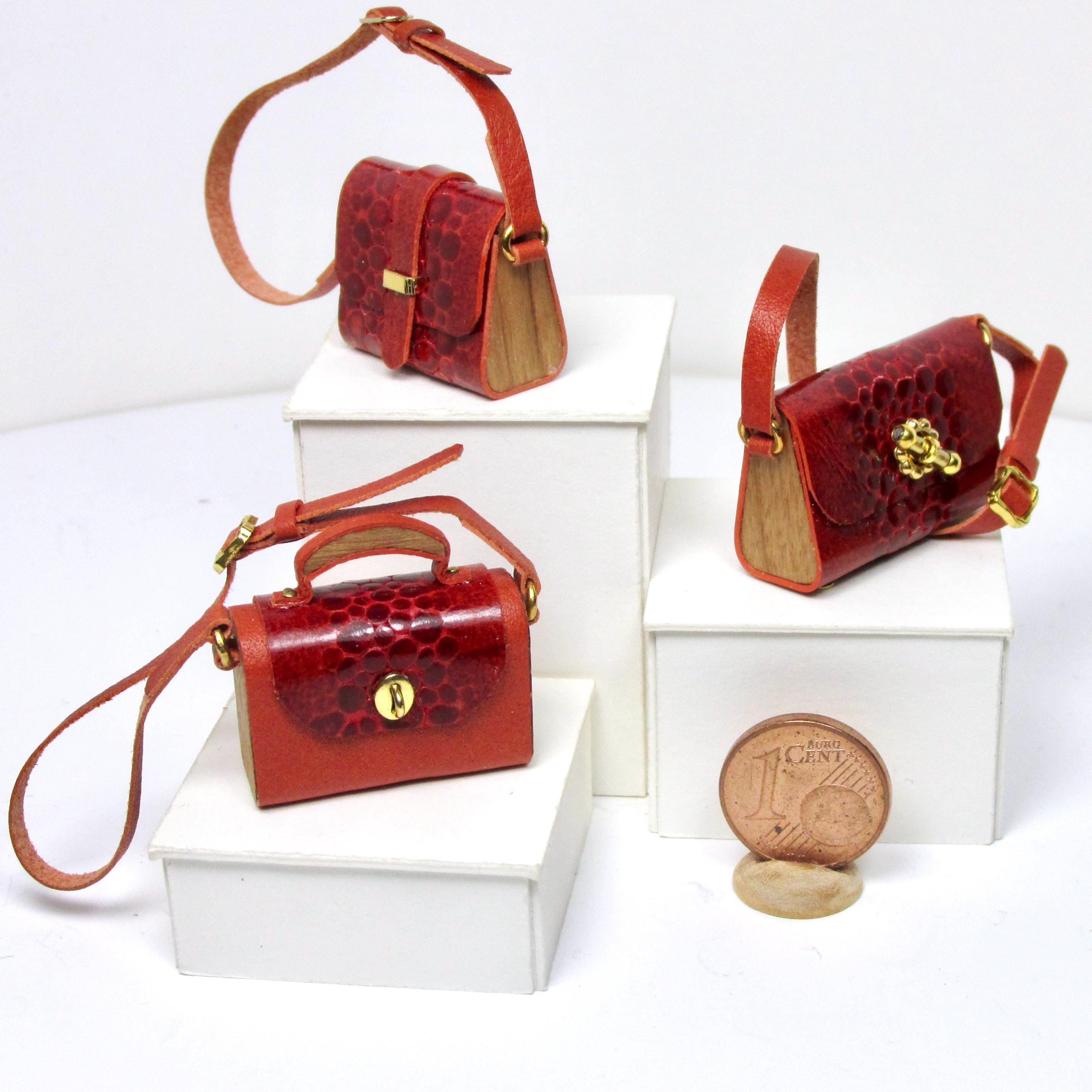 Handcrafted entirely fromr eptile-effect leather and wood, these elegant bags are lifelike in every detail and come in a variety of styles and shapes, with a handle or shoulder strap, perfect for completing glamorous outfits, decorating fashion boutiques, living rooms, and bedrooms. The bags are 1/12 scale.