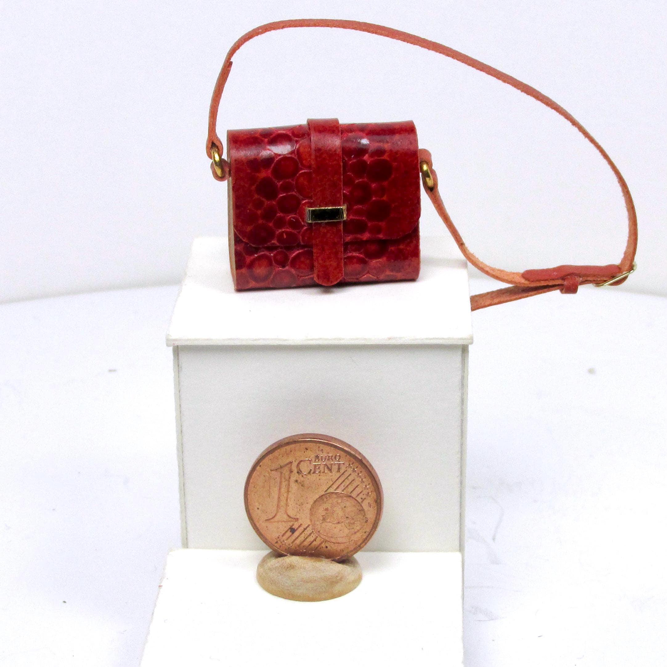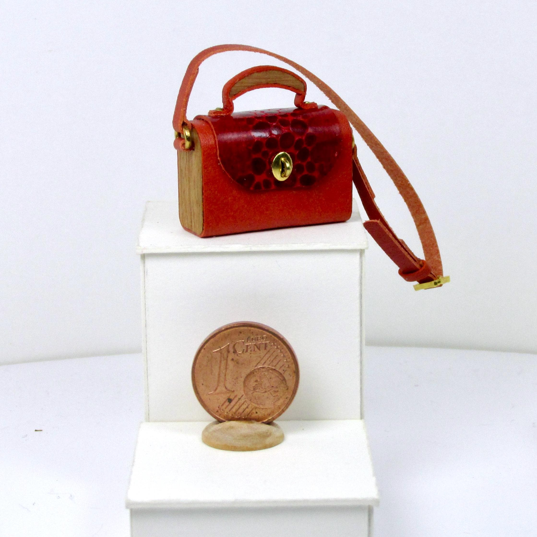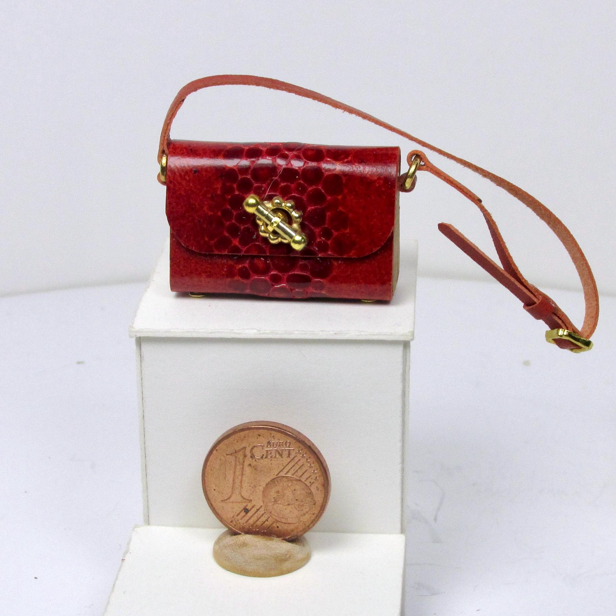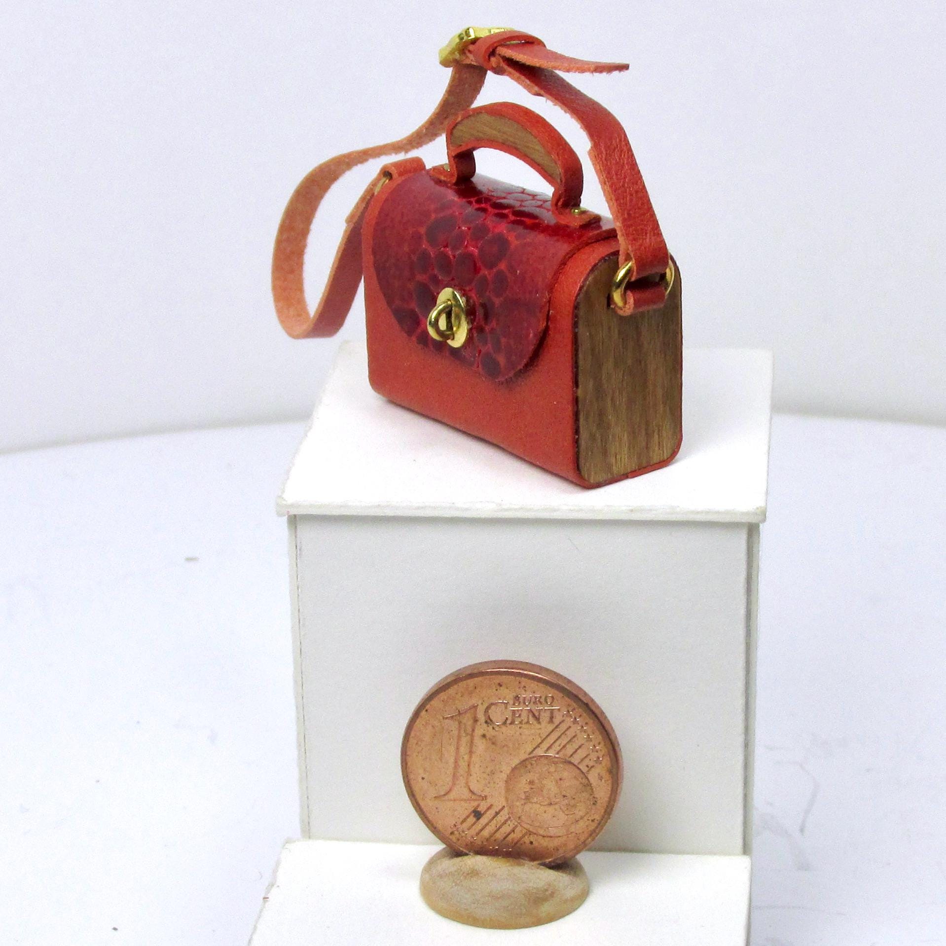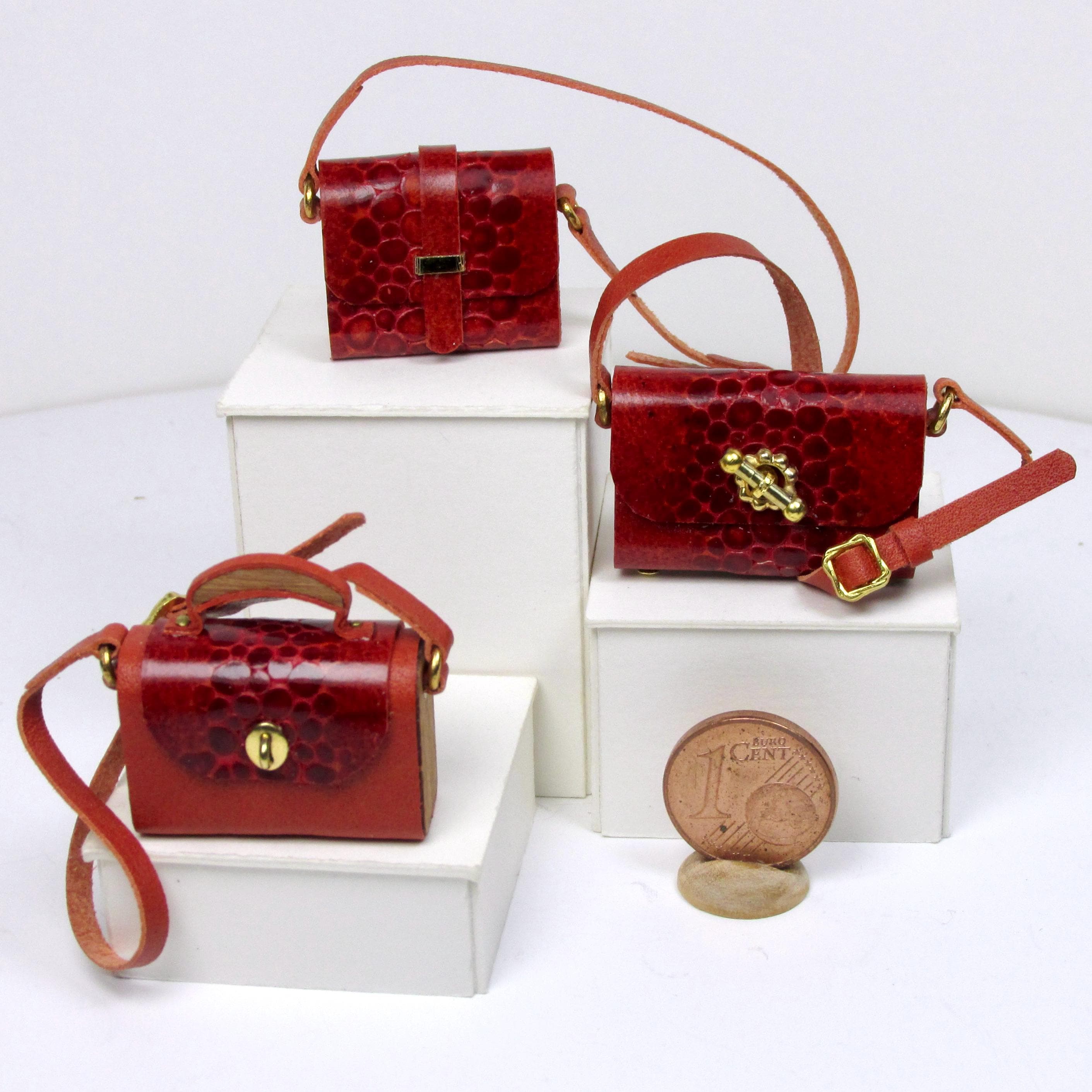 Handcrafted entirely fromr eptile-effect leather and wood, these elegant bags are lifelike in every detail and come in a variety of styles and shapes, with a handle or shoulder strap, perfect for completing glamorous outfits, decorating fashion boutiques, living rooms, and bedrooms. The bags are 1/12 scale.