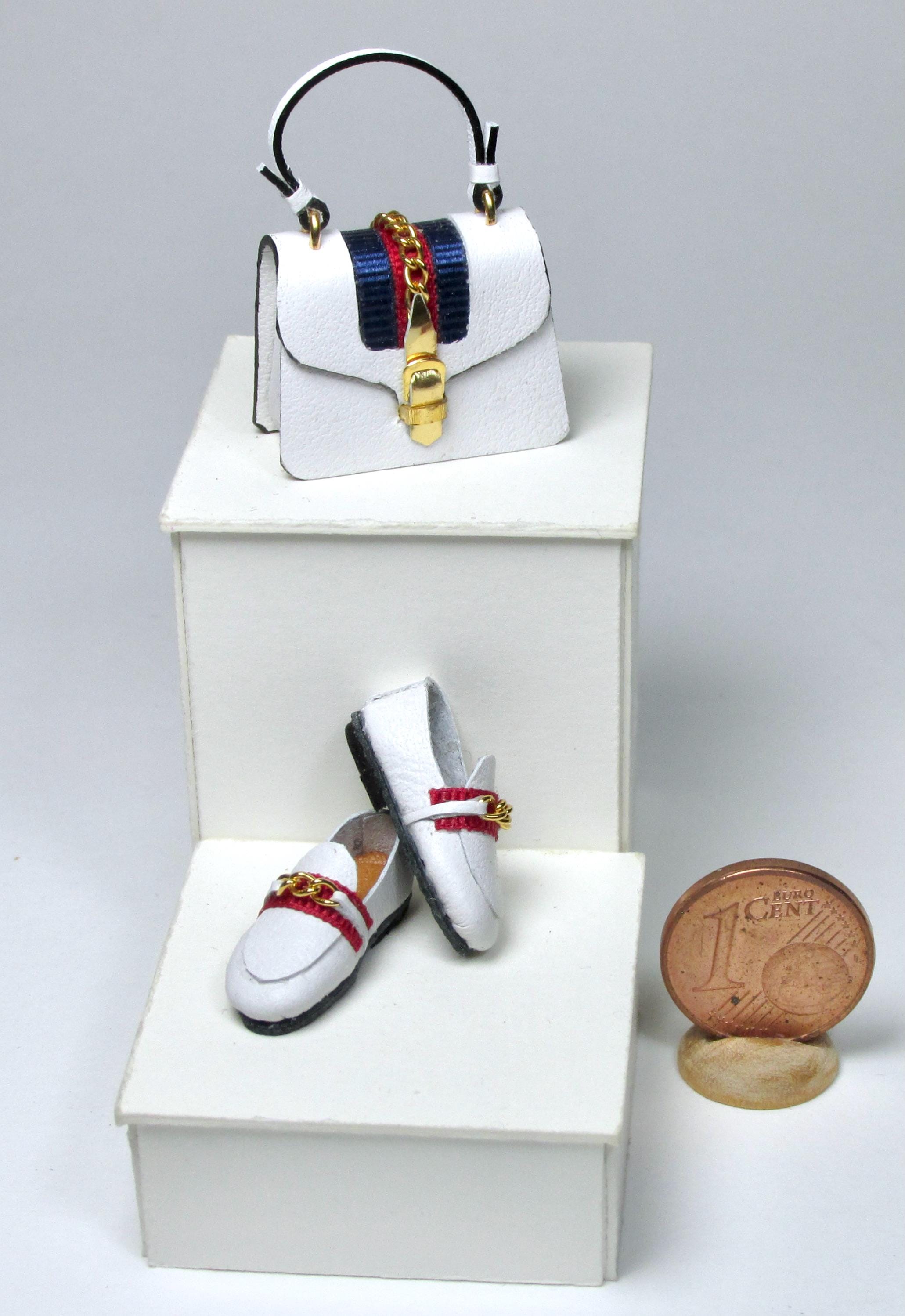 This gorgeous set, featuring a bag and moccasins, is meticulously crafted entirely by hand from leather in various colors, finished with exquisite detail, including the decorative chain and distinctive buckle closure. Their elegant style makes them the perfect accessory for dolls, leather goods, roomboxes, and dollhouses, and will delight even the most discerning collectors. The shoes are designed to be worn by Phicen Dolls in 1:12 scale.